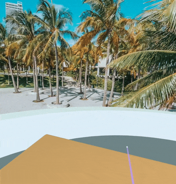 With piercing interactions, users can create, update and remove cutouts that occlude the underneath virtual content with a slice of the live camera stream of the physical world. Passthrough Brush paints strokes of reality on top of the virtual environment using their controller. Passthrough Shape displays the passthrough image on a surface created by the projection from the controllers.